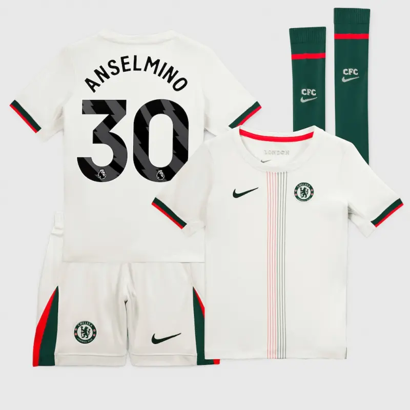 Chelsea Nike Away Stadium MiniKit 2025-26 – Little Youth with Anselmino 30 printing