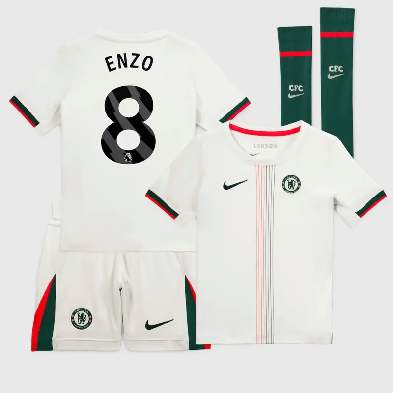 Chelsea Nike Away Stadium MiniKit 2025-26 – Little Youth with Enzo 8 printing