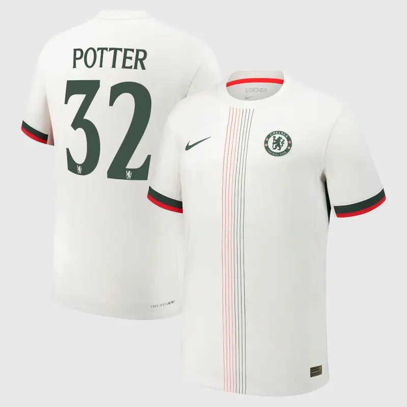 Chelsea WSL Nike Dri-Fit Adv Away Match Shirt 2025-26 with Potter 32 printing
