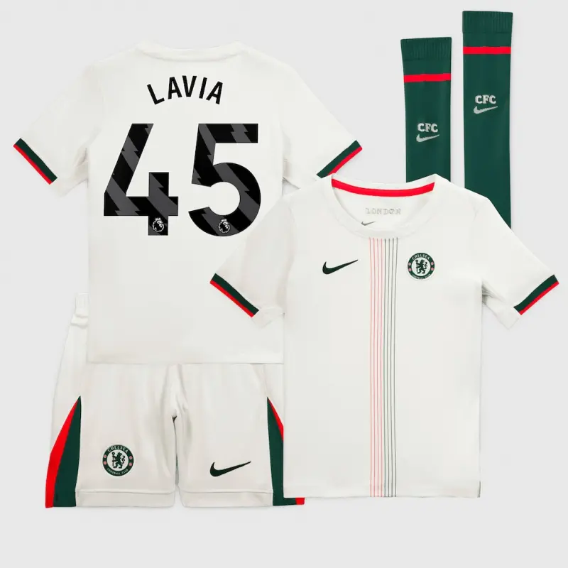 Chelsea Nike Away Stadium MiniKit 2025-26 – Little Youth with Lavia 45 printing
